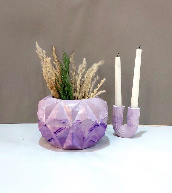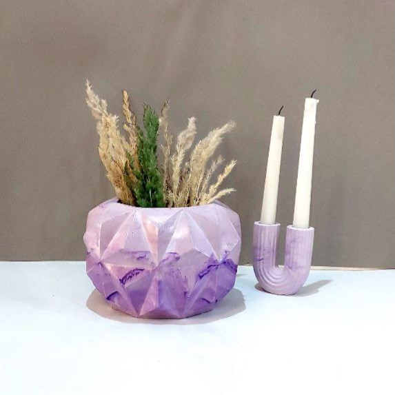 دکوری گلدان سنگی مدل استلار و شمعدان یو